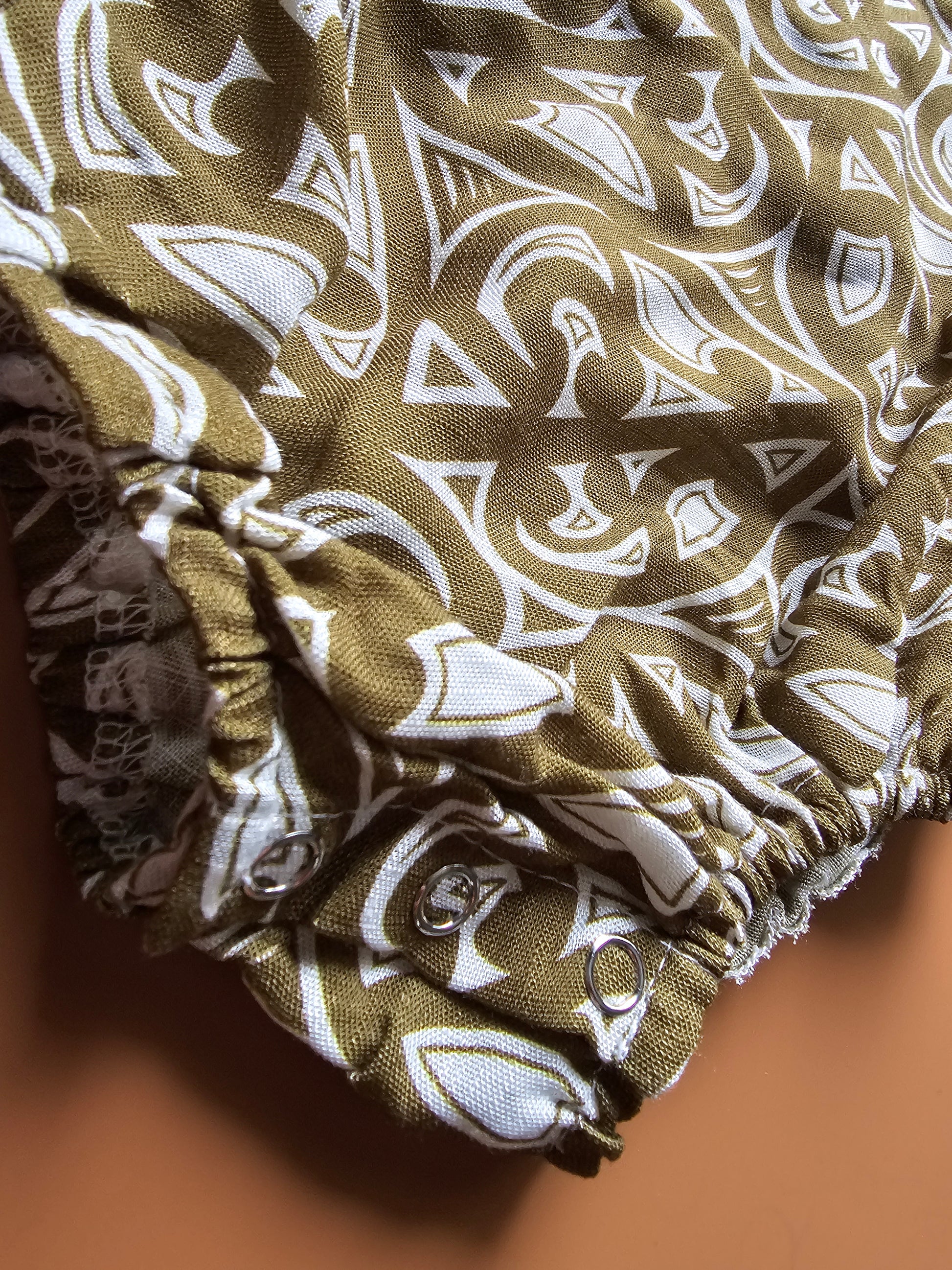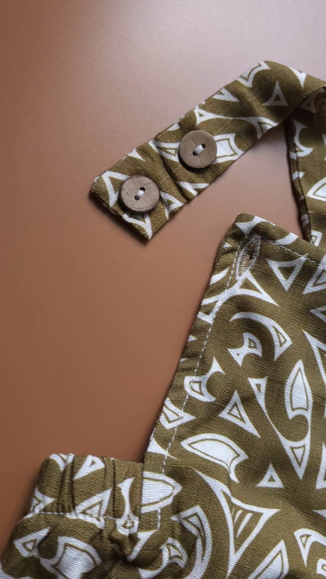 Featuring wood-look buttons for easy sizing adjustments and soft elastic around your little one's legs to ensure the perfect fit. Snap buttons at the bottom for quick and easy changes.